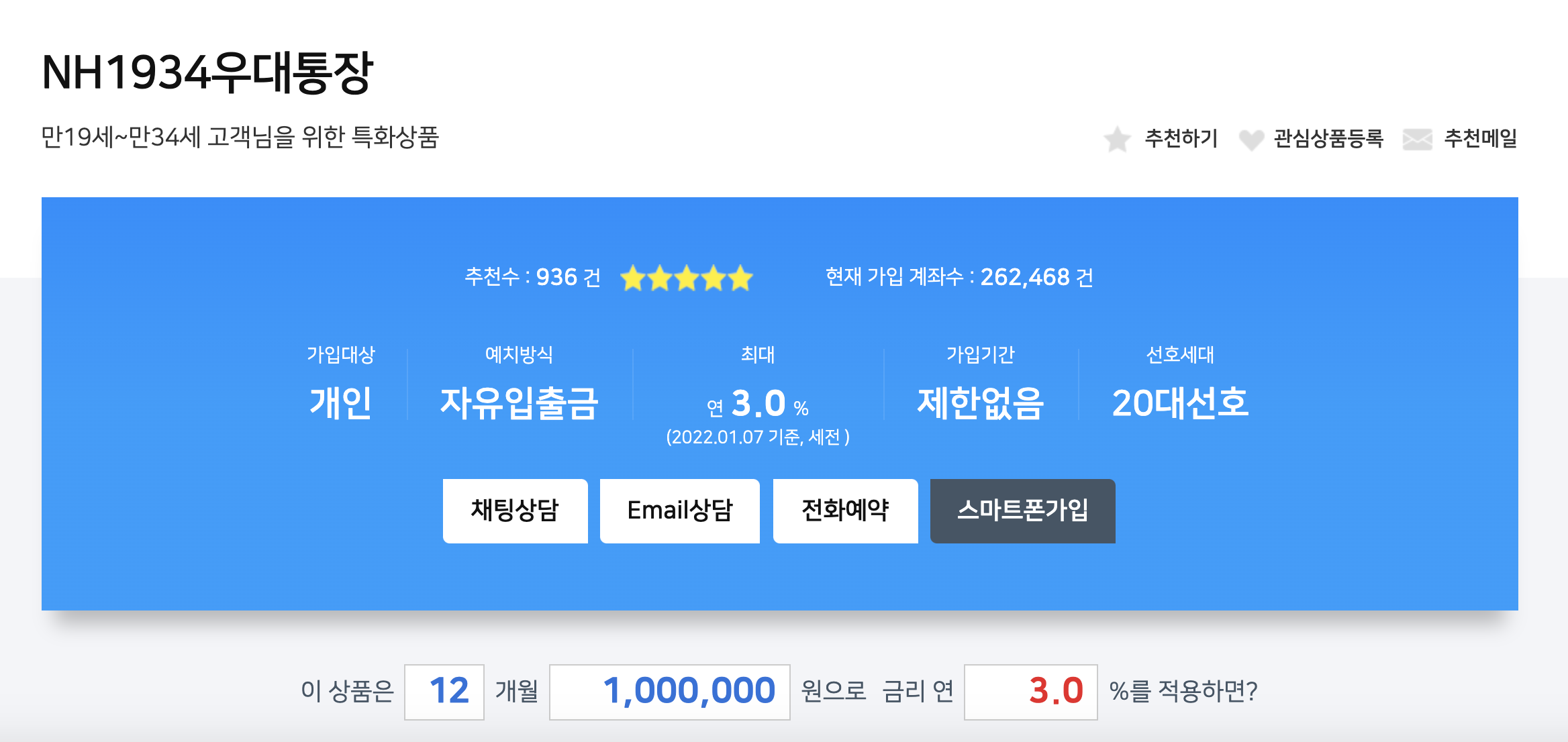 # 농협 파킹통장, nh1934우대통장 이자 금리 정보