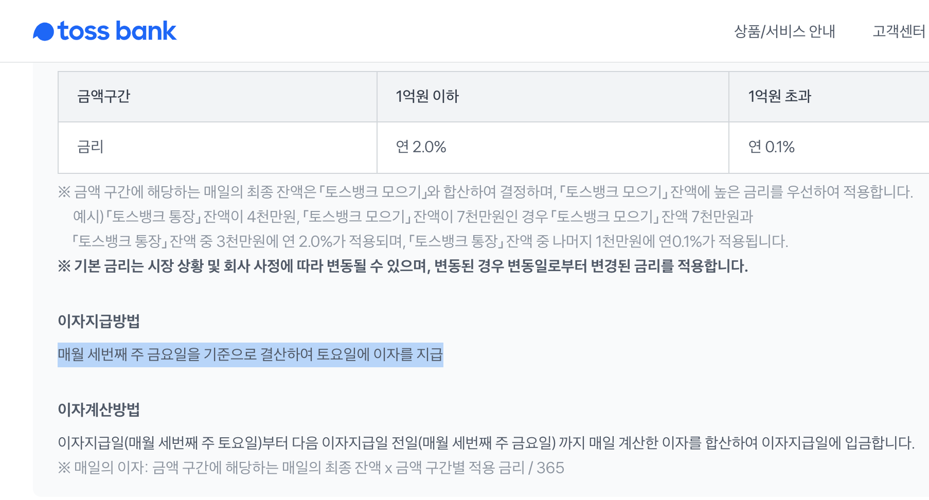 # 토스 파킹통장 이자 정보